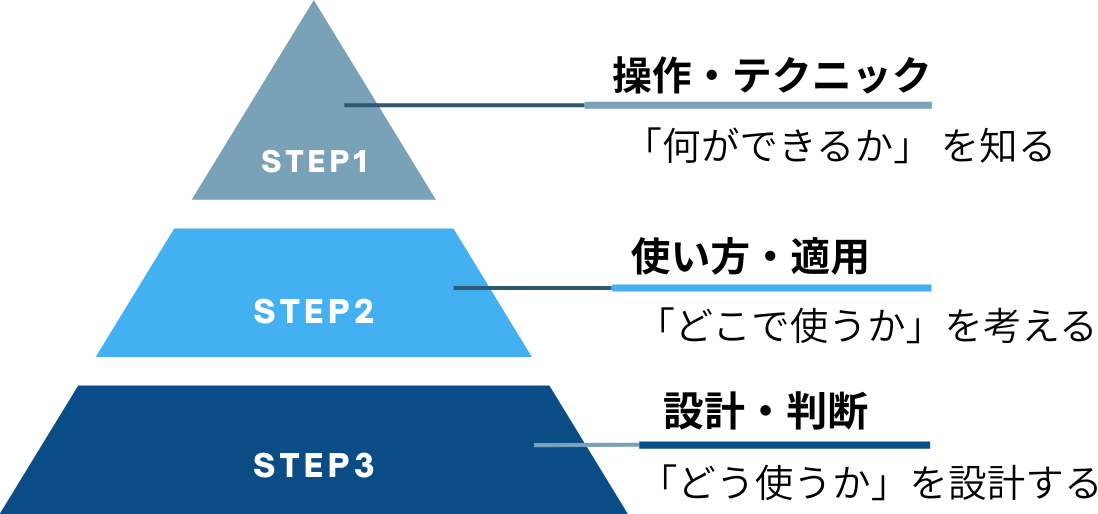 何のためにAIを使うのか、どんな意思決定を変えたいのか。経営全体の中でAIをどう位置づけるかを設計し、「より良い経営判断をするための思考設計」を学びます。